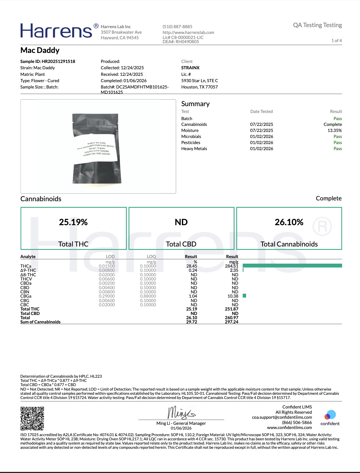 • Total Cannabinoids: 26.10 % (Batch MD101625)