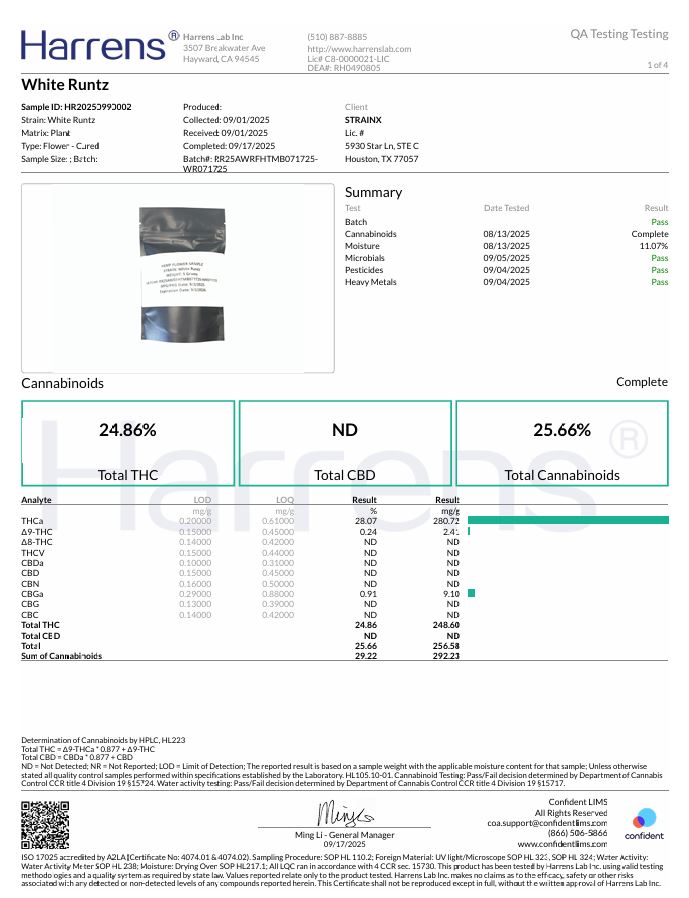 • Total Cannabinoids: 25.66% (Batch WR071725)